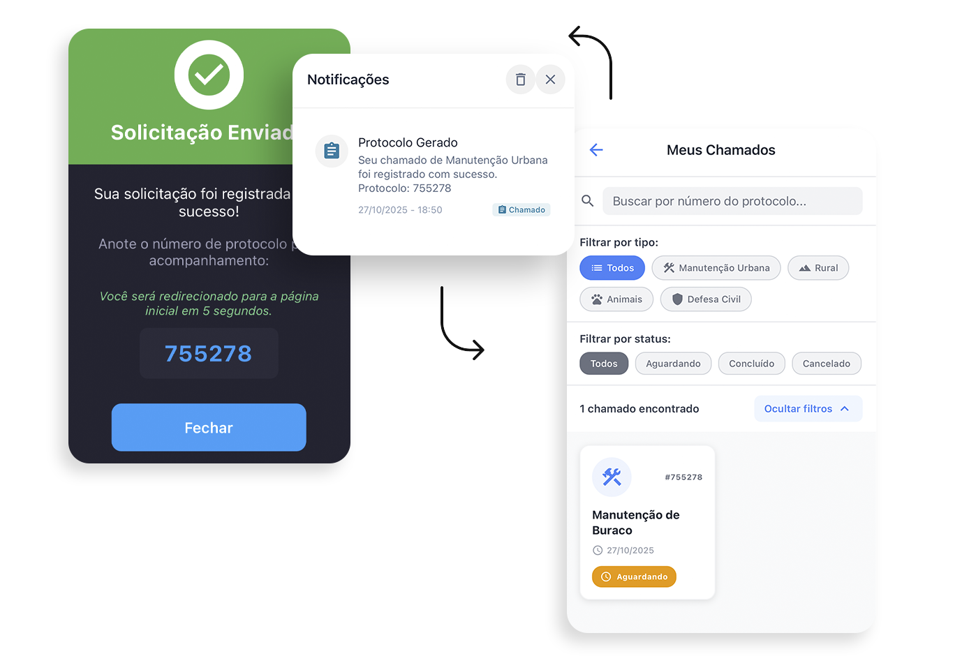 Nossa inteligência direciona automaticamente sua solicitação para a Secretaria responsável.